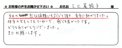 こちらではお客さまの声を紹介いたします。